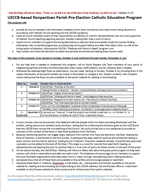 - the original Word file of the one-page USCCB-based Nonpartisan Parish Pre-Election Catholic Education Program, and